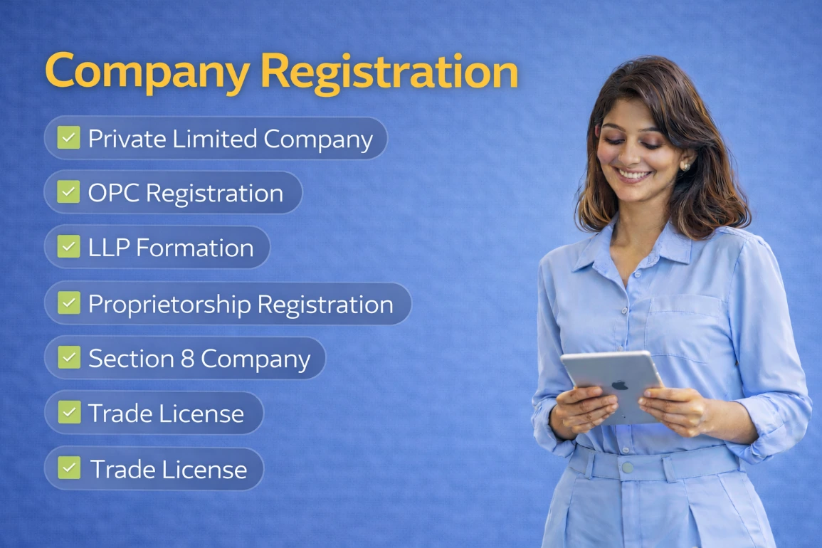 - ✔ Private Limited, LLP & OPC Registration